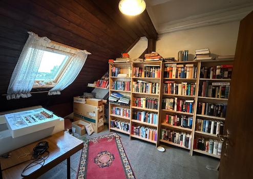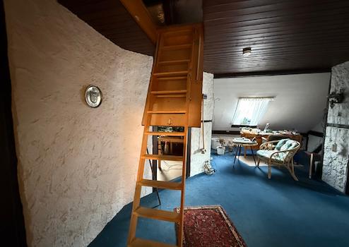 Das Dachgeschoss ist ausgebaut und hier gibt es ein kleines Badezimmer mit Dusche, einen großen Dielenbereich mit Zugang zum Spitzboden und auch in dieser Etage drei weitere Zimmer.