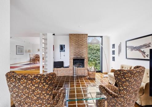 Die stilvolle Architektur und die charmante Ausstattungsqualität zeichnen dieses schöne Anwesen aus. Beim Betreten des Hauses gelangt man in einen Windfang. Durch eine Glastür geht es weiter in die großzügige Diele, von welcher rechts die Küche abgeht. Diese bietet durch ihre Größe und den Zugang zum Garten ein großzügiges Raumgefühl. Hier kann man sich in Ruhe und nach Herzenslust den kulinarischen Aktivitäten widmen. Das Herzstück, den Wohnbereich, betritt man weiter der Diele entlang. Der lichtdurchflutete Wohnraum beeindruckt mit einer mehr als vier Meter hohen Decke, die eine herrschaftliche Atmosphäre schafft. Zwischen Wohn- und Essbereich befindet sich eine gemütliche Kaminecke, die zum Verweilen einlädt. Im Erdgeschoss befinden sich außerdem ein Musik- oder Lesezimmer, ein Gäste-WC, ein Gästebad und eine Garderobe, die alle durch den hellen Flur verbunden sind.