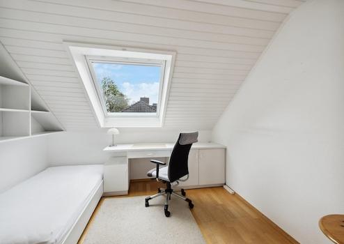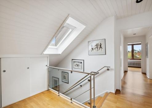 Im Obergeschoss liegen vier geräumige Schlafzimmer mit viel Stauräumen in Einbauschränken. Ein schöner Blick ins Grüne macht diese Räume zu persönlichen Rückzugsorten. Ein weiteres Vollbad befindet sich auf dieser Etage.