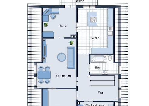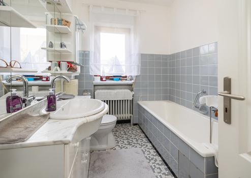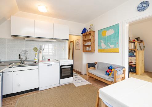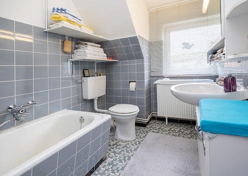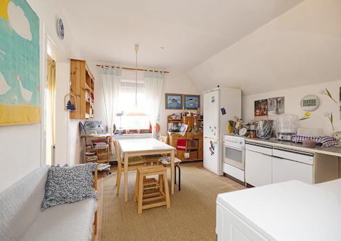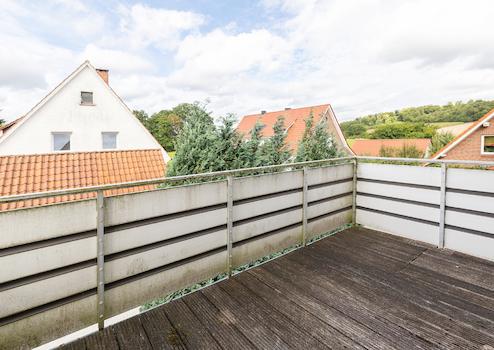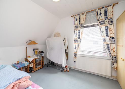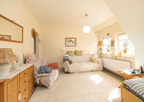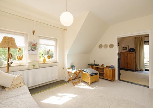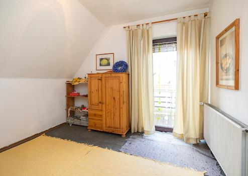 Über den Treppenaufgang in der Diele erreichen Sie das Dachgeschoss. Hier stehen Ihnen vier Zimmer zur Verfügung, darunter ein kleineres Zimmer mit direktem Zugang zu einem Balkon. Abgerundet wird diese Ebene durch eine geräumige Wohnküche sowie ein weiteres Tageslichtbad.