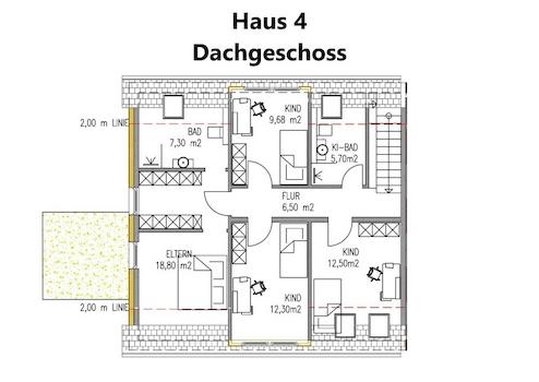 Hier befindet sich der Elternschlafbereich bestehend aus dem geräumigen Elternschlafzimmer von ca. 18 m² mit Ankleidebereich und dem zugeordneten Elternbad mit Fenster von ca. 7 m². Vom zentralen Flur gelangen Sie in zwei schöne helle Kinderzimmern von je ca. 13 m², ein weiteres Kinderzimmer/Büro von ca. 10 m² sowie das Kinderduschbad mit Fenster.