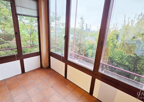 Dank der großen Fensterfront entsteht ein angenehmes Raumgefühl, das die Wohnung größer und offener wirken lässt.