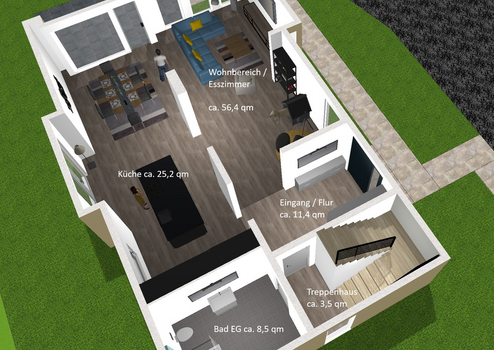 • Offenes Wohnkonzept mit großer Küche und hellen Wohn-/Essbereich