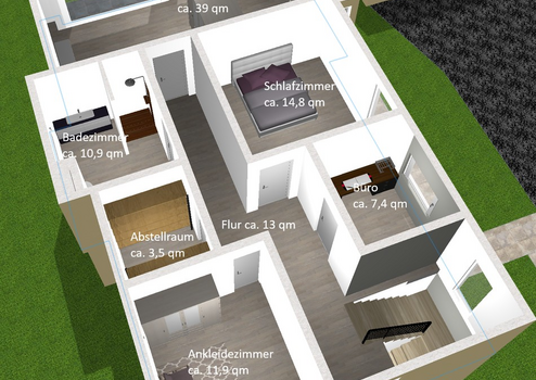 •Ca. 30 m² großer Abstellraum, vielseitig nutzbar (Geräte, Fahrräder etc.), bei Bedarf auch als Garage umbaubar