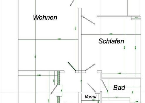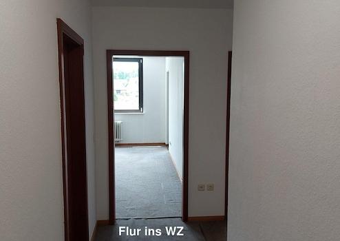 Die Größe beträgt ca. 61 qm zzgl. Kellerraum und teilt sich auf in ein Schlafzimmer, ein Wohnzimmer (beide mit Balkonzugang), Flur, Bad und eine offene Küche.