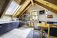 Im unteren Wohnbereich befindet sich der großzügige Wohn- und Essbereich mit Zugang zum überdachten Balkon, der nach Westen ausgerichtet ist und angenehme Sonnenstunden am Nachmittag ermöglicht. Die Küche ist separat gehalten und bietet nicht nur eine voll ausgestattete Einbauküche mit sämtlichen Elektrogroßgeräten, sondern auch ausreichend Platz für einen Esstisch – ideal für gemütliche Familienmahlzeiten oder geselliges Beisammensitzen.