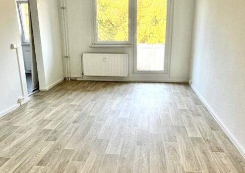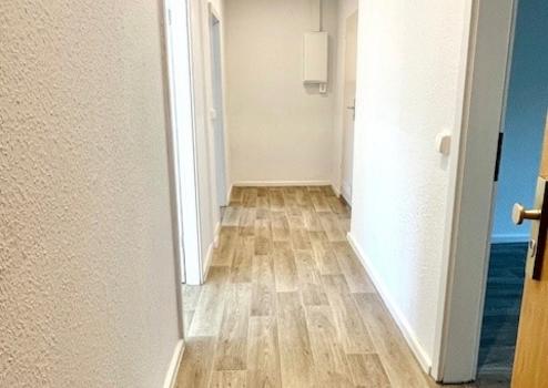 Mit Balkon, gefliestes Bad mit Wanne, moderner PVC als Fußbodenbelag, Tapeten Raufaser weiß gestrichen, Küche mit Fenster, Keller