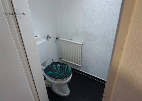 Über den Haupteingang des Gebäudes erreichen Sie das EG mit 3 Räumen, Küche, Bad und WC. Die Räume sind aufgrund des Anbaus aus 2014 sehr tief und wurden nach der früheren, offenen Büronutzung nun mit Trockenbauwänden abgetrennt. Bis vor kurzem wurde diese Fläche wohnwirtschaftlich genutzt. Ein Teil ist aktuell noch bis 31.10.25 vermietet. Vom EG haben Sie direkten Zugang in die Garage.