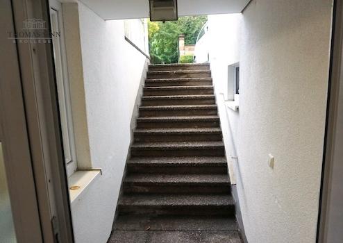 Über die Innentreppe im Haus oder über die separate Außentreppe wird das Garten-/ und Kellergeschoss erschlossen. Diese ehemalige Bürofläche besteht ebenfalls aus 4 Räumen, einer Küche und einem großen, neuen Bad. Ein Bereich ist wintergartenähnlich umgebaut worden. Ein weiterer Abstellraum ist unter der Garage untergebracht. Über die bodentiefen Fensterflächen haben Sie Zugang in den kleinen Grünbereich hinter dem Haus.