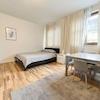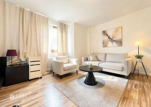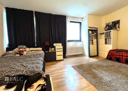 Der helle Wohn- und Schlafbereich bildet das Herzstück der Wohnung. Er bietet genügend Platz für eine gemütliche Einrichtung und lässt sich vielseitig nutzen – sei es als stilvoller Rückzugsort, praktisches Homeoffice oder funktionaler Schlaf- und Wohnbereich in einem. Dank der großen Fenster, die im Jahr 2012 erneuert wurden, ist der Raum lichtdurchflutet und wirkt besonders freundlich. Gleichzeitig sorgen die modernen Verglasungen für eine gute Wärme- und Schallisolierung, was für ein angenehmes Wohnklima zu jeder Jahreszeit sorgt.