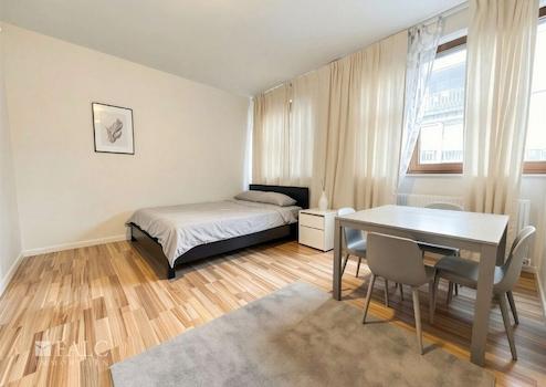 Die Wohnung überzeugt durch eine gepflegte und funktionale Ausstattung, die ideale Voraussetzungen für ein komfortables Wohnen auf kompaktem Raum bietet. Auf rund 26 m² Wohnfläche erstreckt sich ein gut geschnittener Wohn- und Schlafbereich, der dank seiner offenen Gestaltung vielfältige Einrichtungsmöglichkeiten zulässt. Ob gemütliche Sitzecke, praktischer Arbeitsplatz oder einladende Schlafnische – hier lässt sich das Zuhause ganz nach den persönlichen Bedürfnissen gestalten.