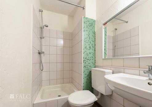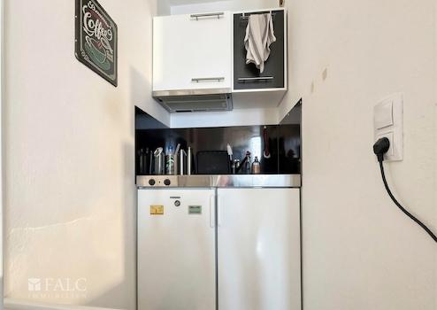 Das Badezimmer präsentiert sich modern und zeitlos. Helle Fliesen, eine komfortable Dusche, ein Waschbecken sowie ein WC schaffen ein gepflegtes Ambiente und erfüllen alle Ansprüche an zeitgemäßes Wohnen. Ergänzt wird die Wohnung durch eine kompakte Pantry-Küche, die trotz ihrer Größe funktional ausgestattet ist und die wichtigsten Bedürfnisse des Alltags abdeckt – ideal für schnelles Kochen und unkompliziertes Wohnen.