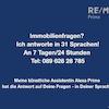 Doch wenn wir uns ausnahmsweise mal eine Mütze Schlaf gönnen, haben wir vorgesorgt: Unsere digitale Assistentin „Alexa Prime“ von RE/MAX Prime ist rund um die Uhr für Sie da. Sie können jederzeit anrufen – 24 Stunden am Tag, 7 Tage die Woche – und bekommen Antworten auf Ihre ersten Fragen oder können direkt einen Besichtigungstermin vereinbaren.