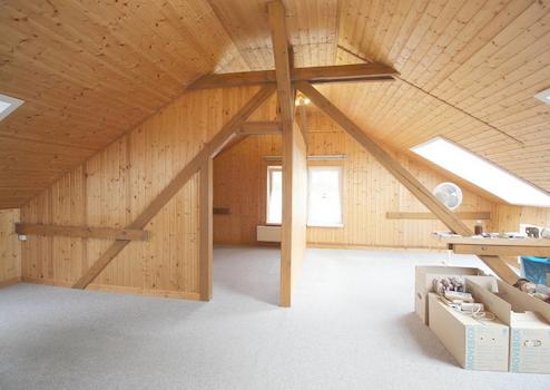 + Holzdämmstoffe in allen Dächern identisch außer auf Garagen- u. Schuppendach