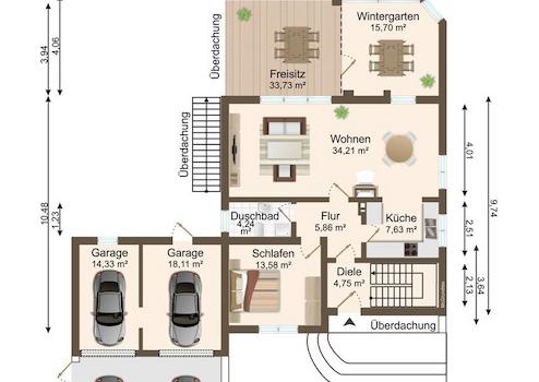+ 1 Masterbad (OG) u. 2 Duschbäder (EG u. OG)