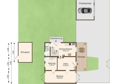 + eigene Einfahrt mit PKW-Stellplätzen und 2 Hauseingängen
