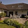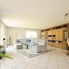 Die weitläufige Terrasse, die an das Wohnzimmer und die Küche anschließt, bietet einen schönen Blick in den Garten und dient in den warmen Monaten als zusätzlicher Raum für Erholung und Entspannung.
