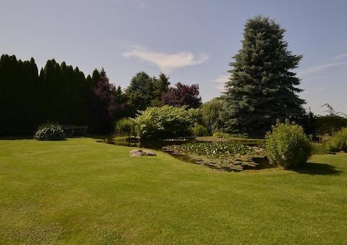 Dieses exklusive und gepflegte Einfamilienhaus aus dem Jahr 1997 befindet sich auf einem wunderschönen, 3.439 m² großen Grundstück mit einem malerischen Teich, eingebettet in eine gekonnt angelegte Gartenanlage. Der Garten verfügt neben einem Rasenmähroboter auch über ein Bewässerungssystem.