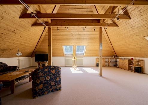 Das Dachgeschoss bietet neben einem sehr großen Zimmer und einem Büro eine eingebaute Sauna Raum zum entspannen.