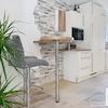Die Wohnung wurde die letzten drei Jahre rundum renoviert und saniert, sie befindet sich im 1A-Zustand. Die Küche ist neu und wurde mit hochwertigen Elektrogeräten (Miele/Bosch) ausgestattet. Die Wohnung ist komplett möbliert und durch individuelle Möblierung praktikabel und raumgewinnend eingerichtet. Neben dem Schlafzimmer mit Doppelbett befindet sich ein weiteres Gästebett. Das Wohnzimmer-Sofa kann als Doppelbett umfunktioniert werden, sodass insgesamt 5 Schlafplätze zur Verfügung stehen. Alle Möbel sind überwiegend neuwertig und wenig benutzt.