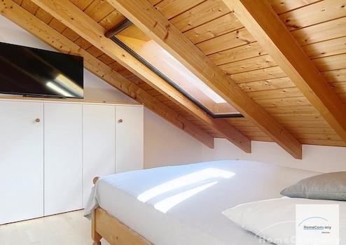 Die Böden bestehen teilweise aus neuen Fliesen (Jura-Marmor-Imitat), neuer Vinyl und Parkett. Das Badezimmer hat eine Fußbodenheizung. Darin befindet sich ein Waschtrockner. In den Dachschrägen wurden individuelle Schränke eingebaut, die für weiteren Stauraum sorgen.