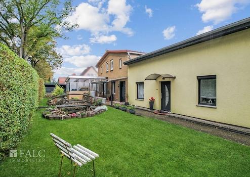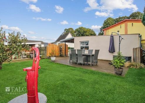 Die Außenanlagen bieten zusätzlichen Komfort: Zwei Garagen und eine große Parkfläche auf dem Hof sorgen für ausreichend Stellplätze. Ein kleiner Garten vor dem Haus und ein großer Garten hinter dem Haus laden zum Verweilen im Freien ein. Die Terrasse, das Wirtschaftsgebäude und das Gewächshaus bieten vielfältige Nutzungsmöglichkeiten.