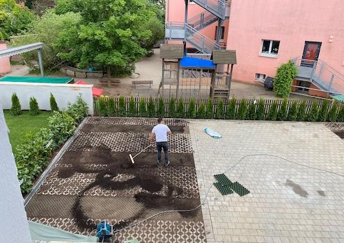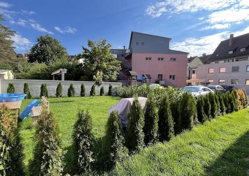 Gerne darf auch unser schön angelegter Gemeinschaftsgarten genutzt werden. Kinder sind herzlich willkommen - direkt angrenzend befindet sich auch ein Kindergarten. Haustiere dürfen nach Absprache auch sehr gerne mit einziehen.