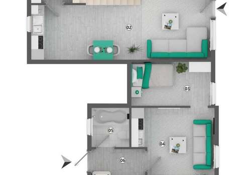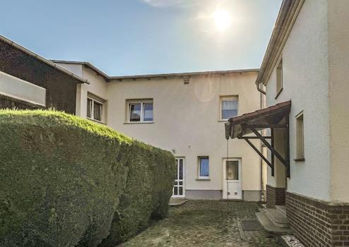 Ergänzt wird das Ensemble durch ein separates Nebenhaus mit drei weiteren Wohnungen. Eine Einheit ist derzeit vermietet und generiert stabile Mieteinnahmen. Die beiden übrigen Wohnungen stehen leer und können nach Bedarf entweder neu vermietet oder selbst genutzt werden. Auch hier sind die Grundrisse gut durchdacht: Beispielsweise bietet eine der Einheiten eine großzügige Wohnküche mit über 25m² Fläche, ein separates Schlafzimmer sowie ein kleines Duschbad – ideal für Singles oder Pendler. Eine weitere Wohnung kombiniert zwei große Schlafzimmer mit einem Wohnzimmer und einem zusätzlichen Kinderzimmer. Die Raumstruktur erlaubt hier sowohl die Nutzung als Familienwohnung als auch eine WG-taugliche Aufteilung.