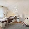 Bei dem Foto des Kinderzimmers und Arbeitszimmers im Obergeschoss wurden die Möbel und Dekoration virtuell hinzugefügt.