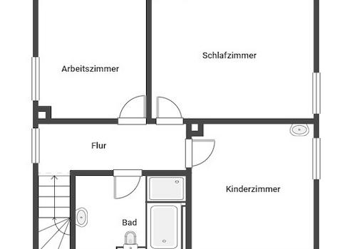 Hier erwarten Sie ein Schlafzimmer, ein Kinderzimmer, ein Arbeitszimmer und ein geräumiges Tageslichtbad mit Dusche und Wanne.