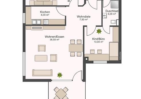 großzügiger Wohnungsgrundriss