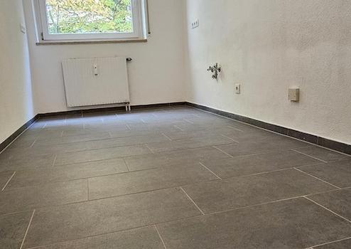Natursteinoptik-Fliesenboden in den Bädern und der Küche