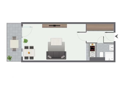 - Praktische Raumaufteilung, die trotz kompakter Wohnfläche eine angenehme Wohnatmosphäre schafft