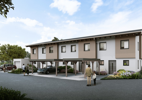 Das Reihenmittelhaus ist mit 3-fach verglasten Kunststofffenstern und elektrischen Rollläden ausgestattet. In den Wohnräumen befindet sich eine Fußbodenheizung mit Einzelraumsteuerung. Als Bodenbeläge sind Parkett, Laminat oder Vinyl vorgesehen, in Bad und WC Fliesen. Die Bauweise entspricht dem KfW-40-Standard und es kommt eine Luft-Wasser-Wärmepumpe zum Einsatz.