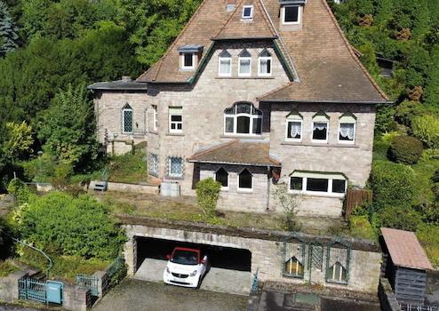 Stilvolle Villa mit Bürofläche - Ein architektonisches Unikat in Bad Orb Eine Immobilie für Liebhaber besonderer Architektur und historischer Bausubstanz. Außergewöhnliche Einfamilien-Villa mit Büro-/Praxisfläche oberhalb der Parkanlagen von Bad Orb. Errichtet um 1925 in repräsentativer Massivbauweise mit Sandstein-Sichtmauerwerk, steht dieses Anwesen aus geschichtlichen und künstlerischen Gründen unter Denkmalschutz. Bereits auf den ersten Blick wird deutlich: Hier erwartet Sie kein alltägliches Wohnhaus, sondern ein architektonisches Schmuckstück mit unverwechselbarem Charakter. Historie & Bauweise Die Villa wurde um 1925 erbaut und erhielt ca. 1974 einen harmonisch angepassten Anbau sowie ein Garagengebäude. Bis heute wurde das Anwesen als Einfamilienhaus mit Bürofläche (Architekturbüro) genutzt. Stilvolle Details wie das Biberschwanz-Dach, Holzfenster mit teils kunstvoller Bleiverglasung im Jugendstil-Anklang und das charaktervolle Sandsteinmauerwerk machen das Haus zu einer echten Rarität.
