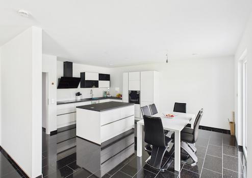 Der offen gestaltete Wohn- und Essbereich ist das Herzstück dieses Einfamilienhauses. Großzügige, bodentiefe Fenster durchfluten die Räume mit Licht und eröffnen einen wunderbaren Blick in den weitläufigen Garten. Die hochwertige Einbauküche mit freistehendem Kochfeld fügt sich harmonisch in das Gesamtbild ein – funktional durchdacht und perfekt für gesellige Abende mit Familie und Freunden.