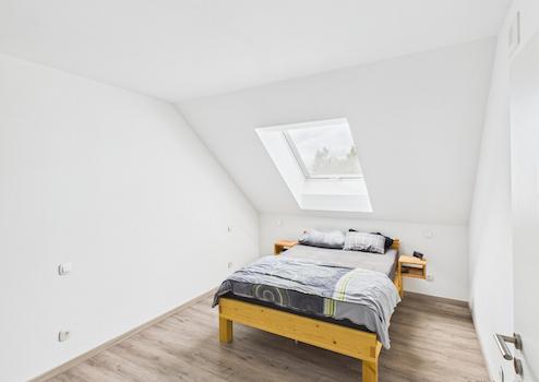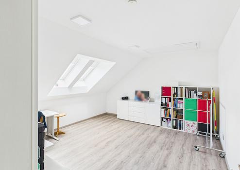 Im Obergeschoss erwartet Sie ein echtes Highlight: das großzügige Elternschlafzimmer mit separatem Ankleidebereich – perfekt für alle, die viel Platz und Komfort zu schätzen wissen. Zwei weitere helle Zimmer lassen sich ganz nach Ihren Bedürfnissen gestalten – ob als Kinderzimmer, Homeoffice oder Gästezimmer.