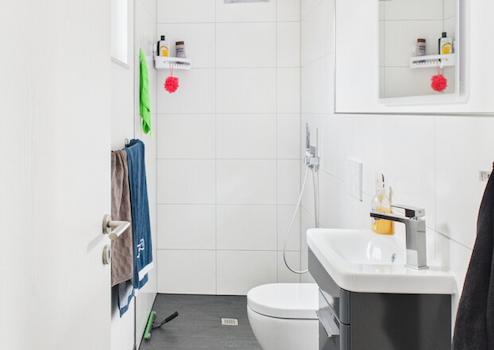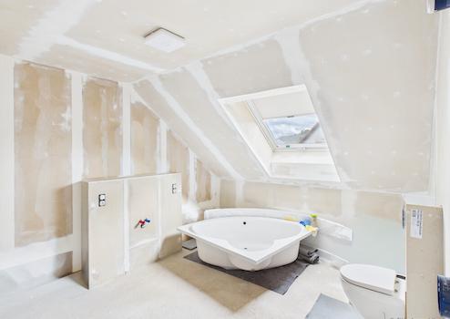 Das große Badezimmer im Obergeschoss ist bereits mit hochwertigen Sanitärobjekten von Villeroy & Boch ausgestattet und für den finalen Ausbau vorbereitet. Wände und Böden sind fertig vorbereitet – so haben Sie die Möglichkeit, Ihr ganz persönliches Traumbad zu gestalten.