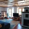 Schreinergefertigte Holzdecken im Wohnzimmer und der Essküche verleihen diesen Räumen eine besonders wohnliche Atmosphäre.