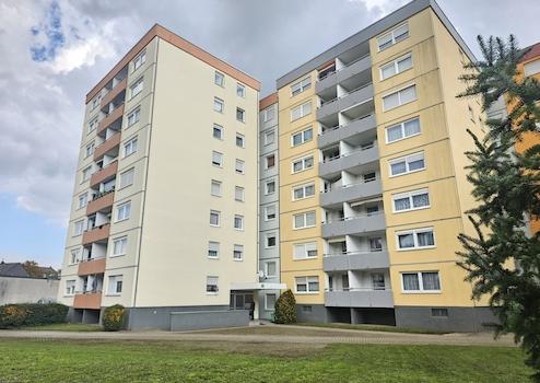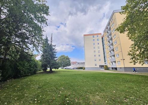 In dem Gebäudeensemble mit 64 Wohnungen, verteilt auf zwei Mehrfamilienhäuser, ist die 73 m² große Wohnung im 7. Obergeschoss gelegen. Ein Stellplatz im Freien auf dem 3.600 m² großen Grundstück ist zugeordnet und im Kaufpreis enthalten. Die Wohnung ist in gutem Zustand. Sie entspricht den heutigen Anforderungen zeitgemäßen modernen Wohnens.
