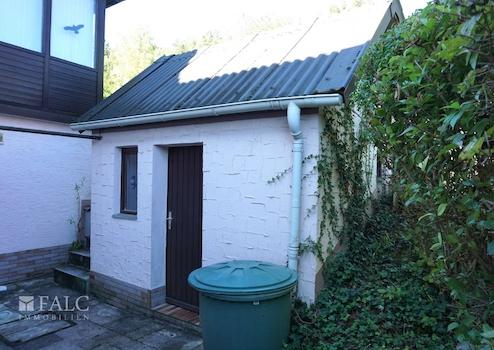 Neben dem Wohnhaus gehören ein separates Nebengebäude sowie eine Doppelgarage mit Strom- und Wasseranschluss zum Anwesen. Der Schuppen bietet zusätzlichen Nutzwert: Im unteren Bereich befindet sich eine kleine Werkstatt mit ca. 7,35 m², während der obere Teil mit ca. 4,4 m² als Lager für Gartengeräte dient – beide Ebenen verfügen über einen separaten Zugang.