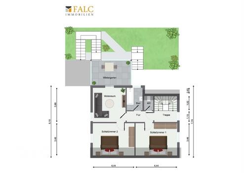 DG: 3 Zimmer, Bad mit Dusche, separates WC, Wintergarten mit Kitchenette