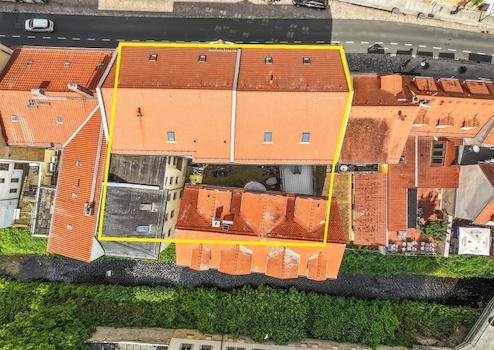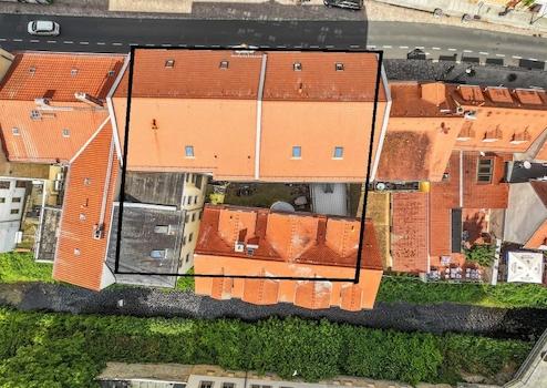 Das Wohn- und Geschäftshauskomplex mit 15 Wohn- und 2 Gewerbeeinheiten besteht aus einem Vorderhaus mit Seitengebäude und einem Hinterhaus.