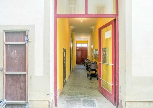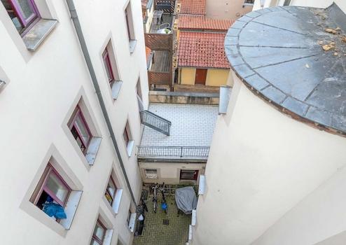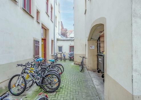 Im Innenhof befindet sich der Zugang zum Seitengebäude und zum Hinterhaus. Fahrradständer sind vorhanden.