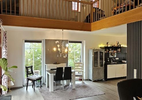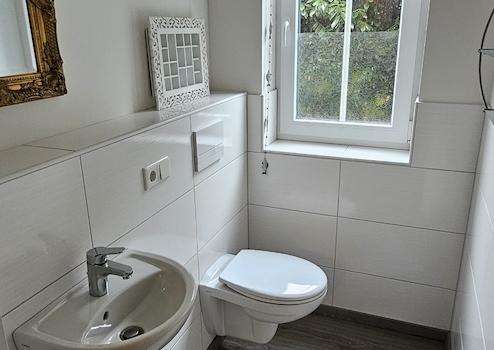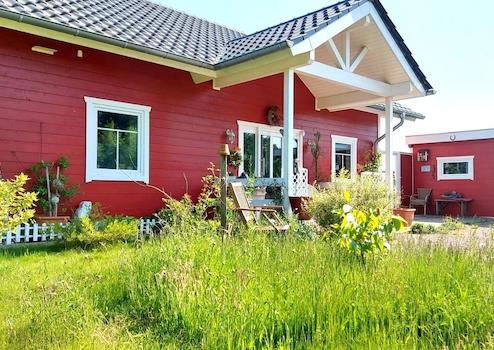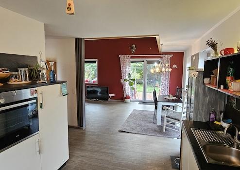 Das solide und bestens gedämmte Gebäude befindet sich in einem sehr gut erhaltenen Zustand. Das Haus wurde im Jahr 2018 als Fertighaus in energieeffizienter Elementbauart erbaut. Die Beheizung erfolgt über eine Gas-Brennwerttherme, die Warmwasseraufbereitung zusätzlich über zwei Solarmodule auf dem Dach unterstützt. Die Fenster in Kunststoffrahmen sind isolierverglast. Im Haus ist bereits ein Glasfaseranschluß verlegt worden. Das Haus ist nicht an die städtische Kanalisation angeschlossen, es ist eine moderne Kläranlage vorhanden. Das Grundstück wurde zur Bauzeit malerisch mit Teich und Baumbestand angelegt und liegt sehr ruhig inmitten von Feldern und Wiesen. Der Gartenteil hat viel Baumbestand um die Teiche und es muss viel freigeschnitten werden.