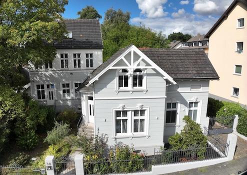 Da wir ins Ausland ziehen, steht nun das (unserer Meinung nach) schönste Haus in Solingen zum Verkauf. Auf stolzen 1508 m² treffen Historie und Moderne aufeinander sowie eine Vielzahl an Möglichkeiten: Das Haupthaus (146 m²) mit Einliegerwohnung (99 m²) sowie der hintere Anbau (86 m²) schaffen ideale Voraussetzungen für große Familien oder Mehrgenerationswohnen. Wer lieber nicht mit den Verwandten zusammen ziehen möchte, kann sich die Finanzierung durch Mieteinnahmen erleichtern, indem er die Wohnungen vermietet. Zudem ist das Anwesen auch für GründerInnen oder Selbstständige interessant, die Wohnen und Arbeiten an einem Ort kombinieren möchten. Denkbar wären etwa Werkstätten, Produktionsräume, Büros oder Praxen.