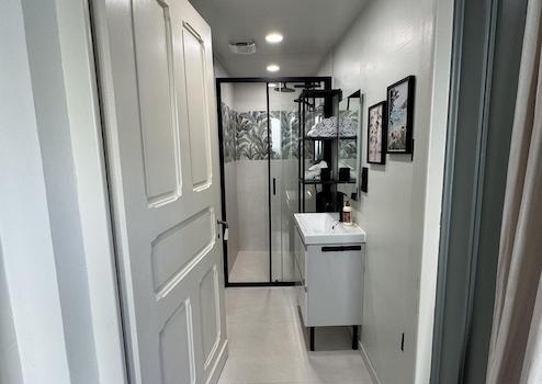 •ein Badezimmer mit Fenster