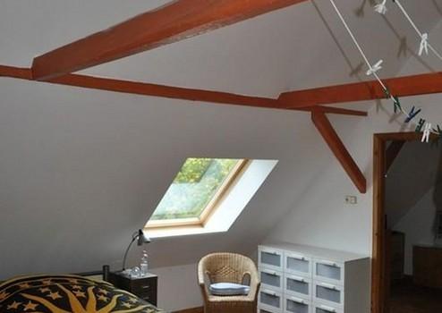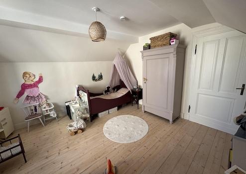 •ein Schlafzimmer mit originalem Dielenboden im ausgebauten Dachgeschoss,