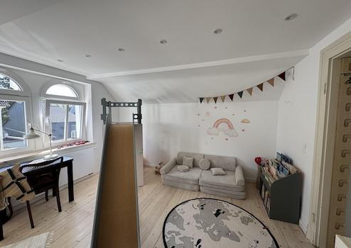 Die Einliegerwohnung befindet sich im „Nebenhaus“ und verfügt über einen eigenen Eingangsbereich. Die 99 m² große und ebenfalls lichtdurchflutete Maisonettewohnung erstreckt sich über drei Ebenen. Aktuell ist die Wohnung vermietet, voraussichtlich wird die Mieterin jedoch im Mai/Juni/Juli 2026 ausziehen. Die Wohnung bietet: