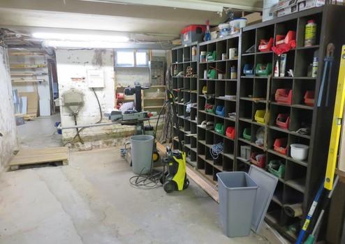 •ein Kellergeschoss mit Fenstern (Souterrain), Waschküche, Lagerraum, Hausanschlussraum sowie einem großen Hobby-/Werkstattraum mit Zugang zum Garten